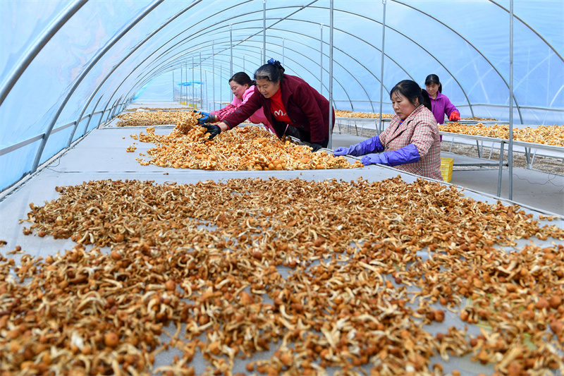 4月14日,清水縣省級(jí)食用菌現(xiàn)代農(nóng)業(yè)產(chǎn)業(yè)園內(nèi),農(nóng)民正在采摘、晾曬滑子菇。目前,該產(chǎn)業(yè)園年種植規(guī)模達(dá)2000萬棒,吸納1200余名農(nóng)村勞動(dòng)力就近就業(yè),有效推動(dòng)了當(dāng)?shù)剞r(nóng)業(yè)提質(zhì)增效,成為縣域經(jīng)濟(jì)高質(zhì)量發(fā)展的“綠色引擎”。